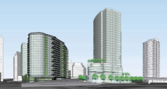 初期的图显示3层色彩丰富的空中连接桥,连接着两栋大楼。它肯定会在这快速变化的温哥华天际线成为最引人注目的地标之一。